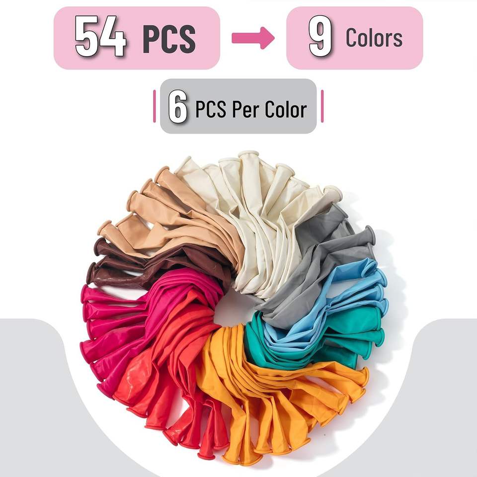 Globos de Fiesta de Colores Surtidos, Paquete de 54 Globos para Decoraciones Festivas