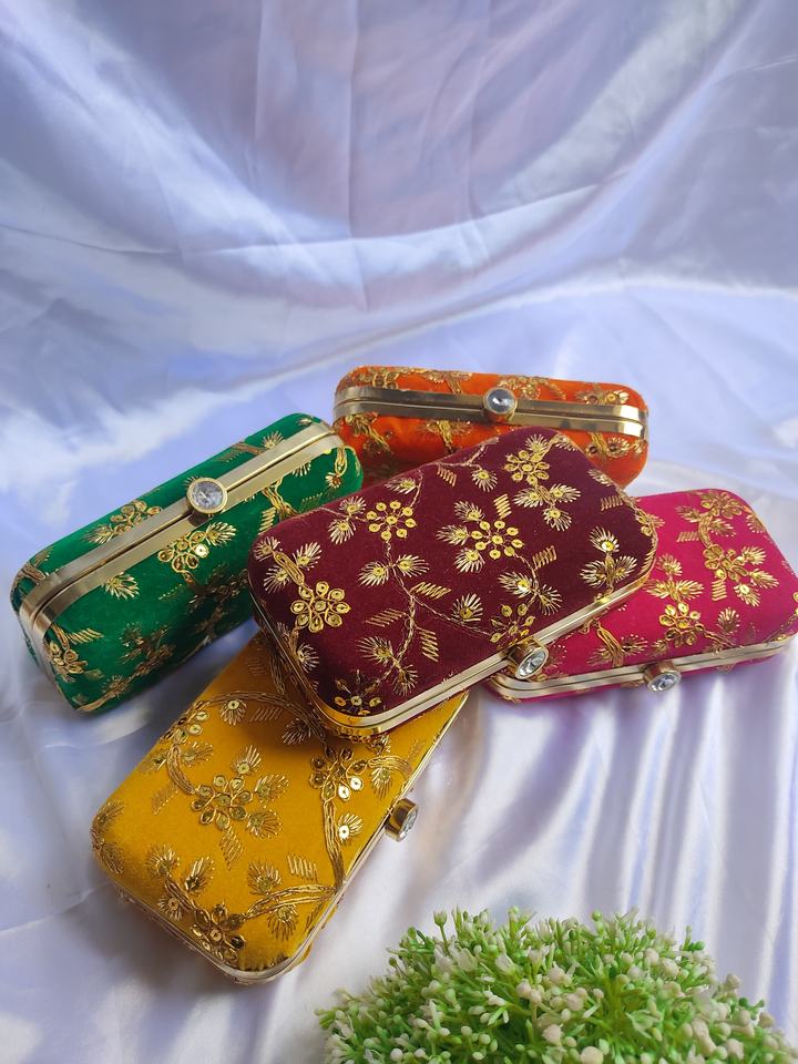 Bolsos de mano tipo clutch bordados / Cartera india con cadena para el hombro