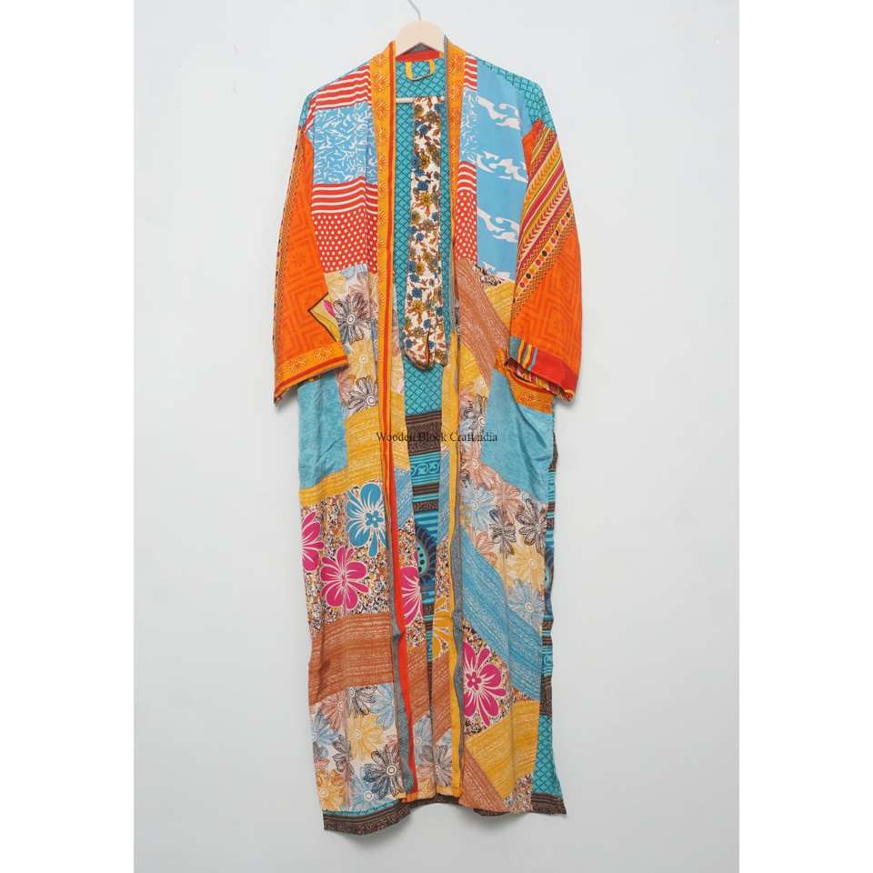 Albornoz de seda indio multicolor surtido, estilo kimono, Kantha, ropa de dormir al por mayor, vestido largo hecho a mano con patchwork