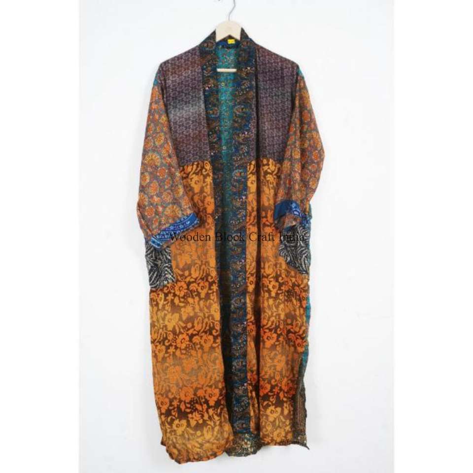 Albornoz de seda indio multicolor surtido, estilo kimono, Kantha, ropa de dormir al por mayor, vestido largo hecho a mano con patchwork