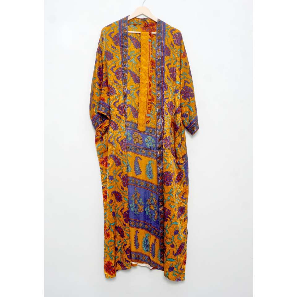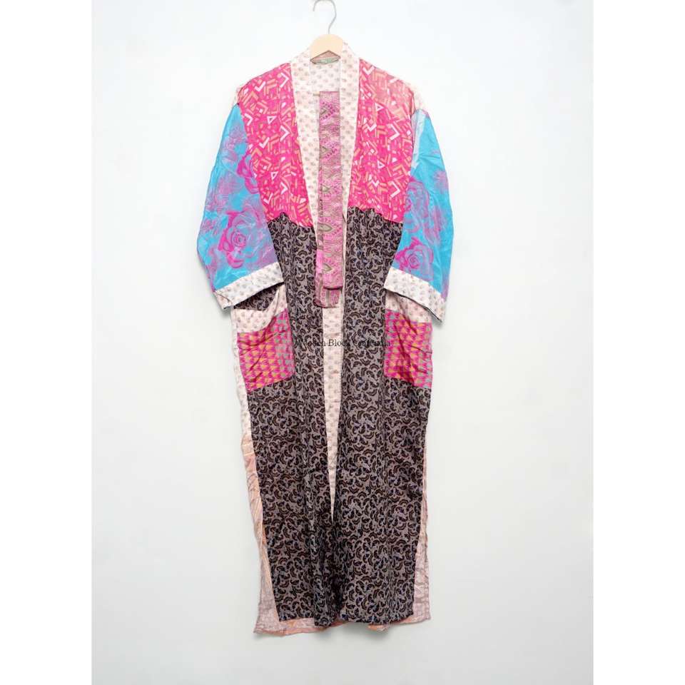 Albornoz de seda indio multicolor surtido, estilo kimono, Kantha, ropa de dormir al por mayor, vestido largo hecho a mano con patchwork