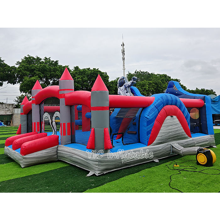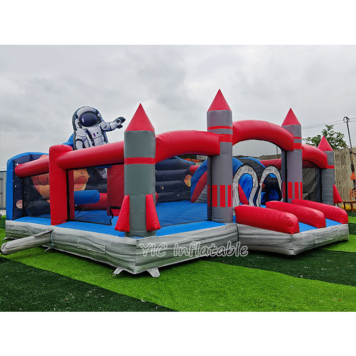 Castillo Inflable con Temática Espacial de Astronauta, Pista de Obstáculos Inflable, Casa de Brinco Comercial con Forma de Cohete, Combo de Castillo Inflable para Fiestas Infantiles de Alquiler