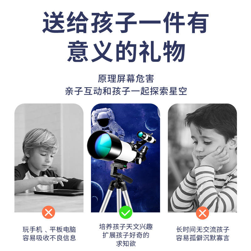 Telescopio astronómico de 70 mm con revestimiento múltiple, doble uso, para cielo y tierra, modelo de nivel básico de alta definición para niños y principiantes