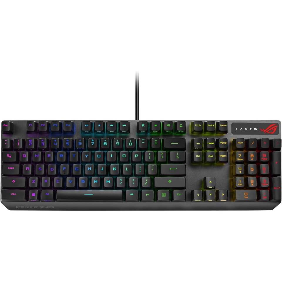 Teclado Mecánico para Juegos Asus Rog Strix Scope Rx, Interruptores Ópticos Rojos, Cableado, Retroiluminación RGB, Teclado Numérico