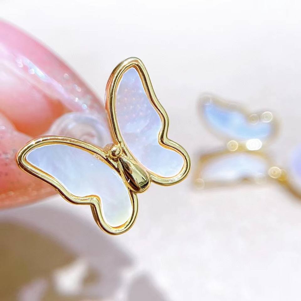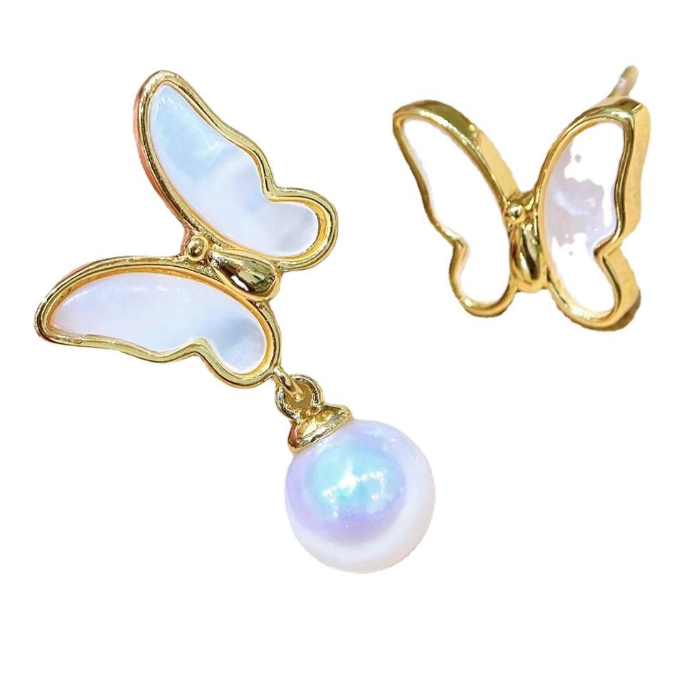 Pendientes Asimétricos de Moda con Perlas de Agua Dulce Akoya de 7mm, Diseño de Mariposa, Pendientes de Perla Natural