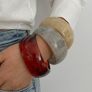 Brazalete de resina cuadrado redondo asimétrico, brazalete de serie Azul minimalista de moda, accesorio de joyería grueso para mujer