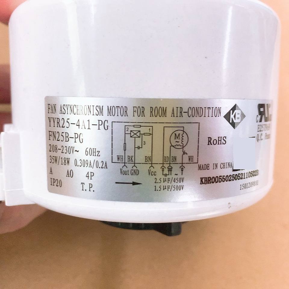 Motor Asíncrono para Aire Acondicionado YYR25-4A1-PG 60Hz Monofásico a Prueba de Goteo, Motor de Ventilador Interior FN25B-PG