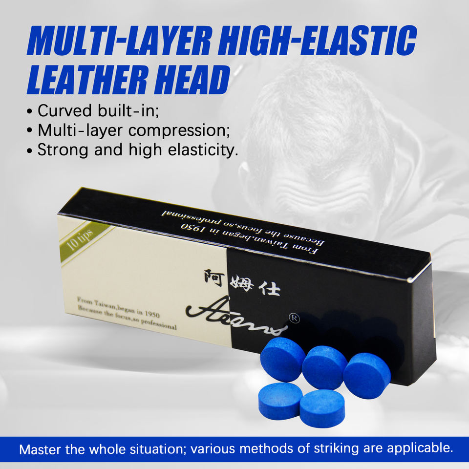 Puntas de Taco de Billar Atams de Cuero Multicapa, 10 Piezas/Caja, Puntas Profesionales para Tacos de Billar para Clubes y Jugadores