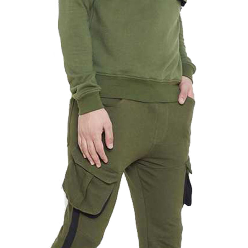 Conjunto Deportivo Informal para Hombre, Transpirable, Estampado, con Cordón, Bolsillos Tipo Cargo, Verde, Algodón, para Correr