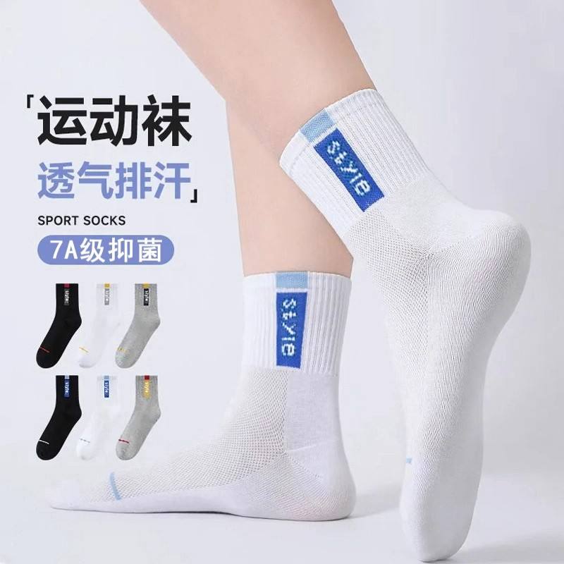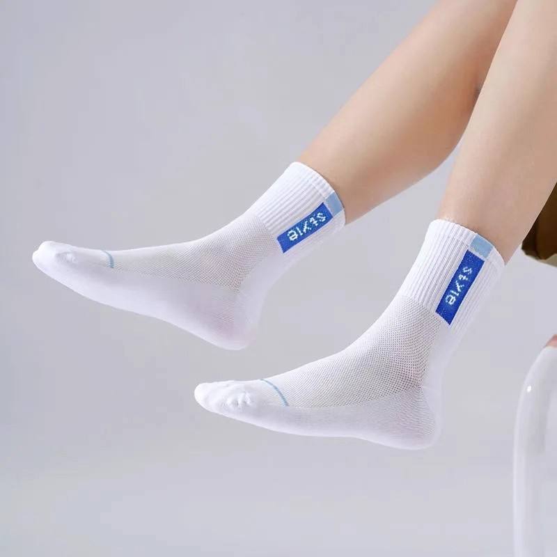 Athletic Socks Mid Calf Breathable Polyester Cotton Mesh Summer Sports Basketball Men's Thin Style
