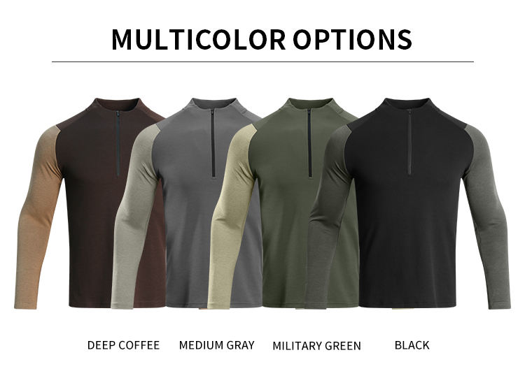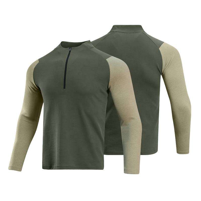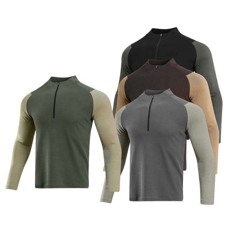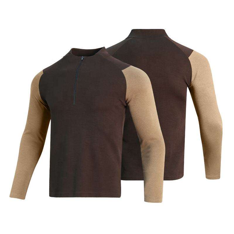 Athletic Top Sweat Quarter Zip Shirt Hombres Gym Shirts Khaki Polyester Shirt