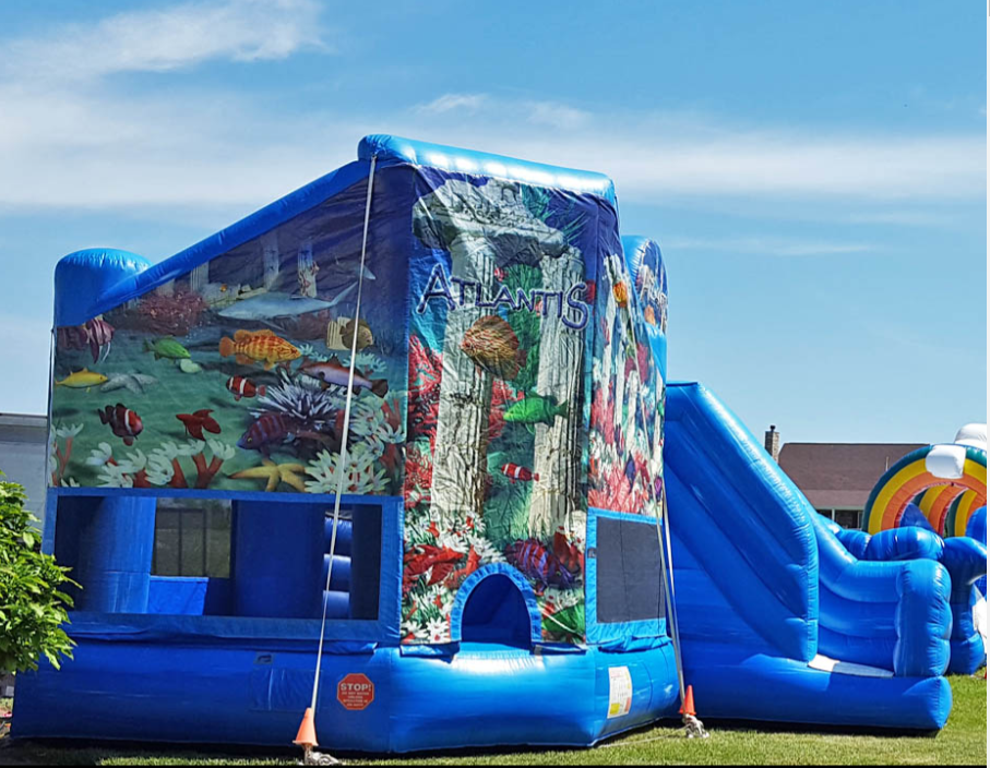 Combo Inflable Atlantis, Castillo Inflable con Tobogán Maravilla Submarina, Combo Castillo con Temática del Mundo Submarino
