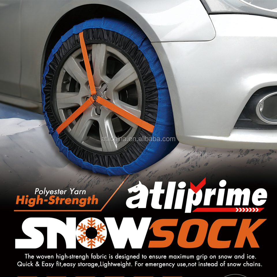 Atliprime - Calcetines de Nieve de Montaje Rápido, Nuevos, de Fibra de Poliéster, con Tracción para Automóviles, Cadena de Nieve de Tela Textil