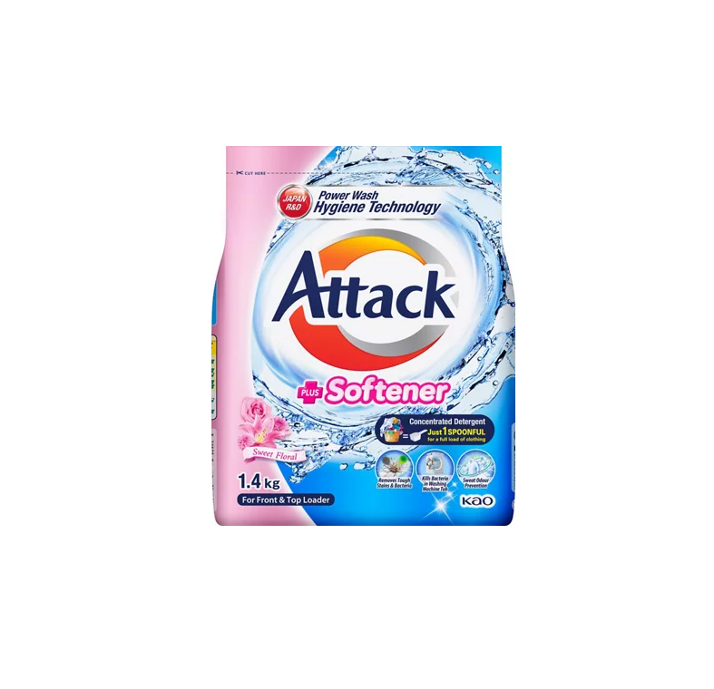 Detergente en polvo Attack y suavizante de telas 1400G X 8 para un cuidado efectivo de la ropa