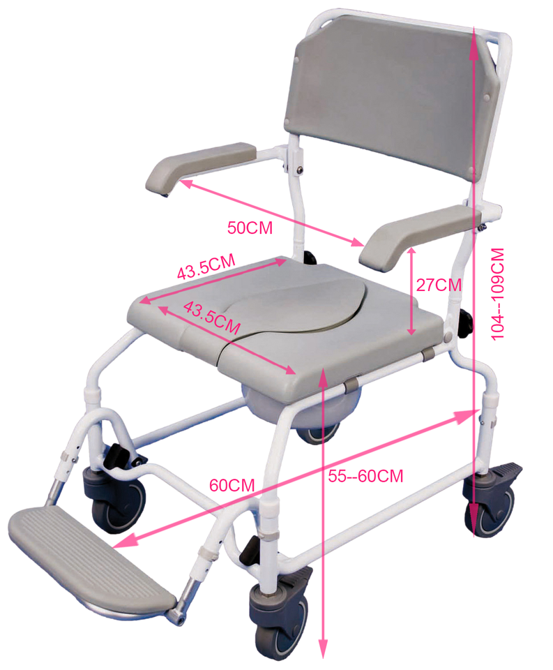 Silla de ducha móvil autopropulsada para asistentes, impermeable y resistente a la corrosión