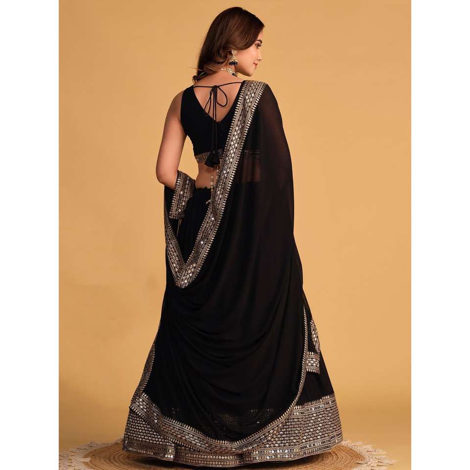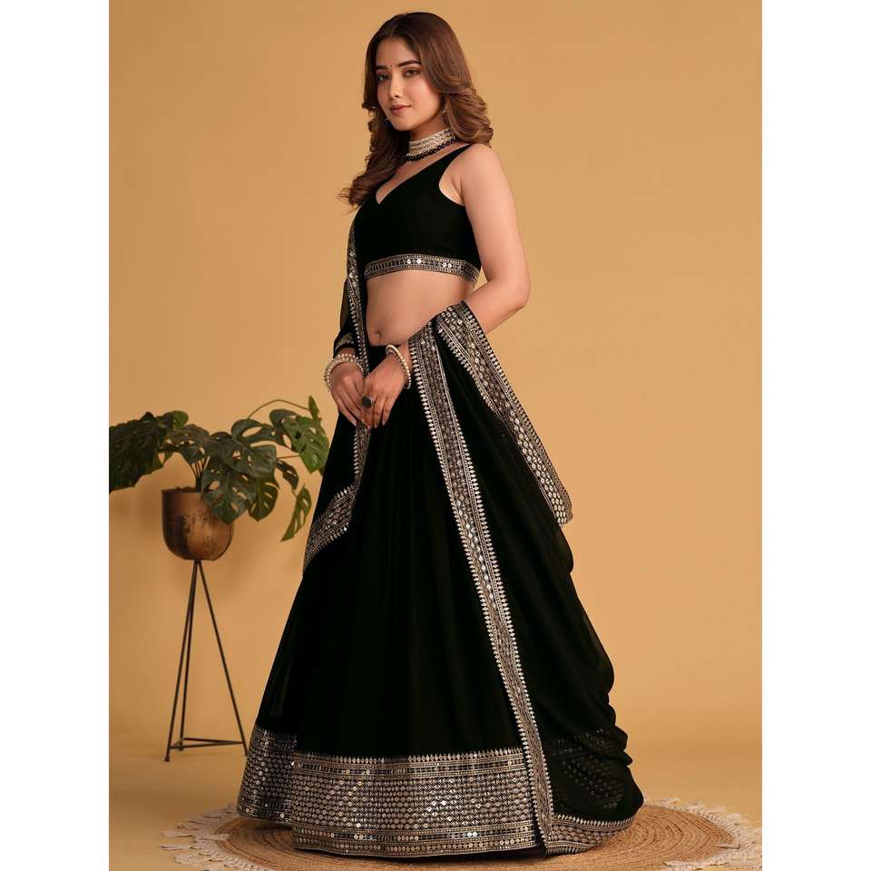 Atractivo negro bordado Georgette desgaste de fiesta Lehenga Choli