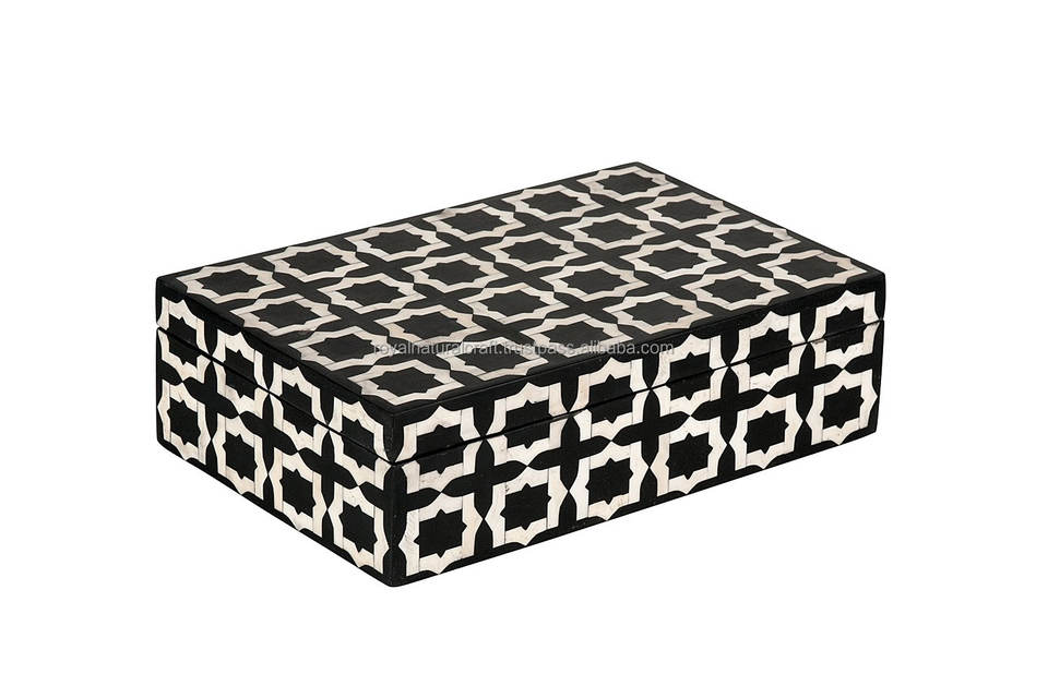 Atractivo joyero de diseño de resina hecho a mano indio con incrustaciones de hueso de Sons para almacenamiento de fiestas