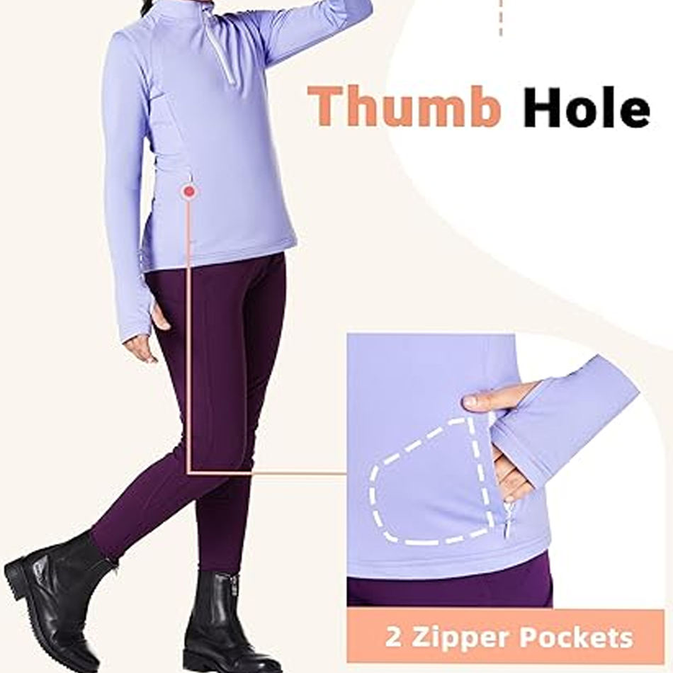 Tendencia personalizada niña 1/4 cremallera invierno manga larga niños capa Base camisas ecuestres para niños para montar a caballo Top