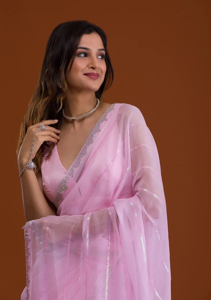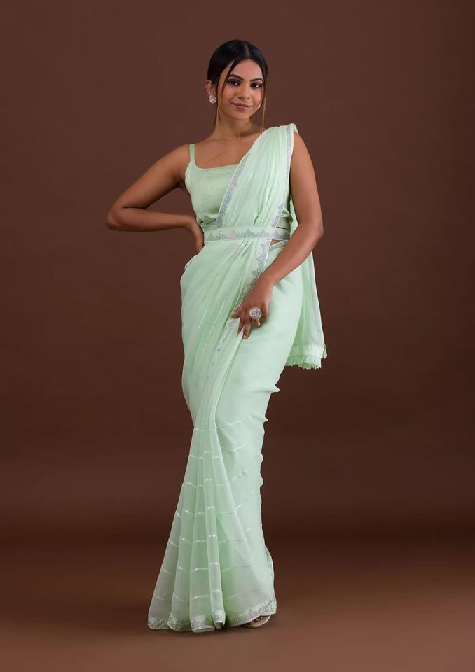 Nombre del producto:Georgette bordado y Siroski trabajo Sari Blusa con cinturón