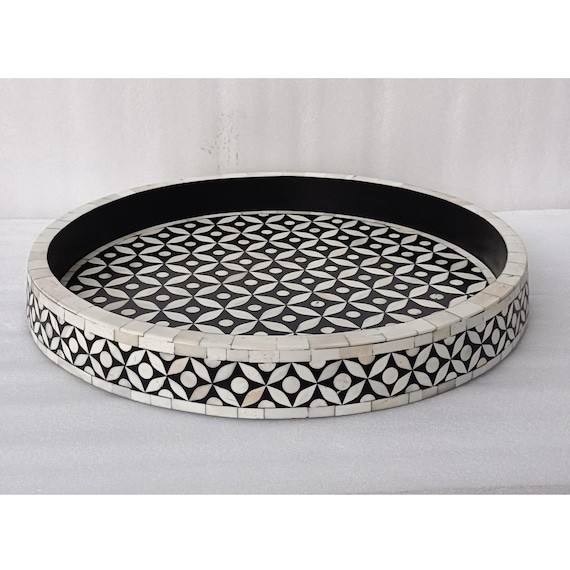 Atractivo patrón de forro incrustaciones de hueso multiusos bandeja de servicio funcional uso para Ramadán desayuno fruta café té servir platos