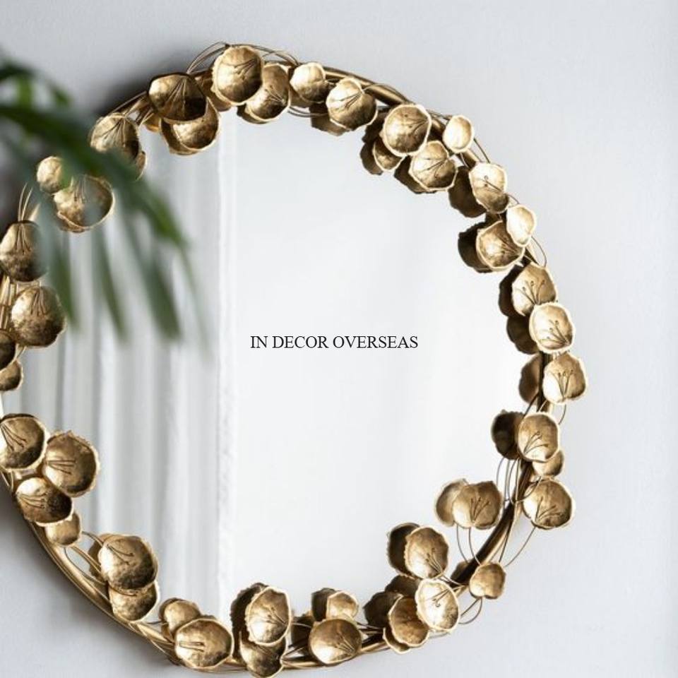 Espejo de forma redonda de aspecto atractivo con marco de Metal resistente chapado en oro de alta calidad para el suministro de decoración de la pared del hogar y del Hotel