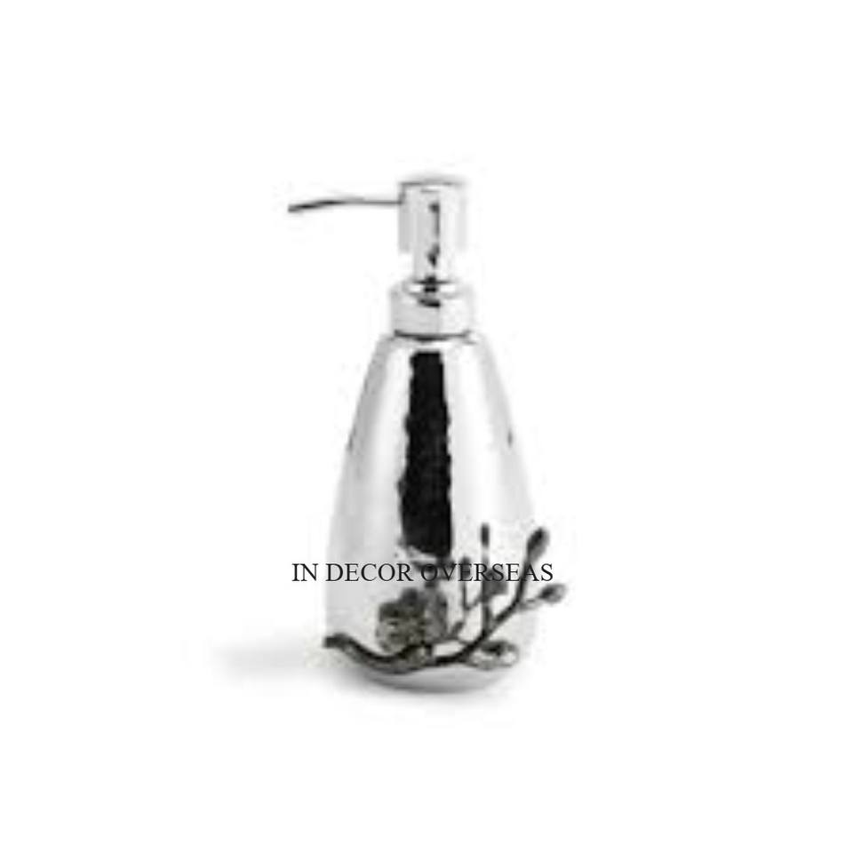 Dispensador de jabón líquido de Metal resistente con recubrimiento en polvo de Color blanco de aspecto atractivo con base de diseño chapado en oro y bomba plateada