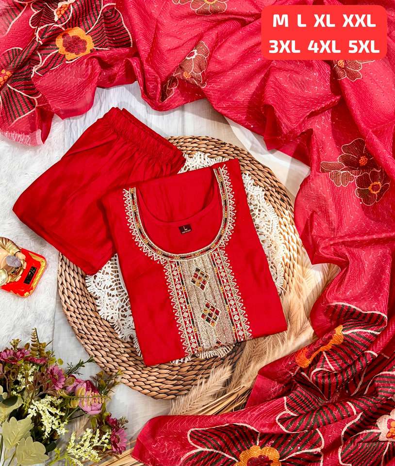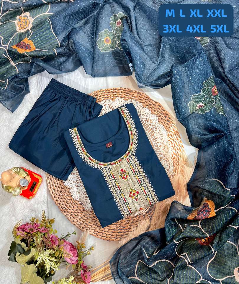 Premium Roman con el trabajo de la mano con Multi Color Kurti Pant y Dupatta