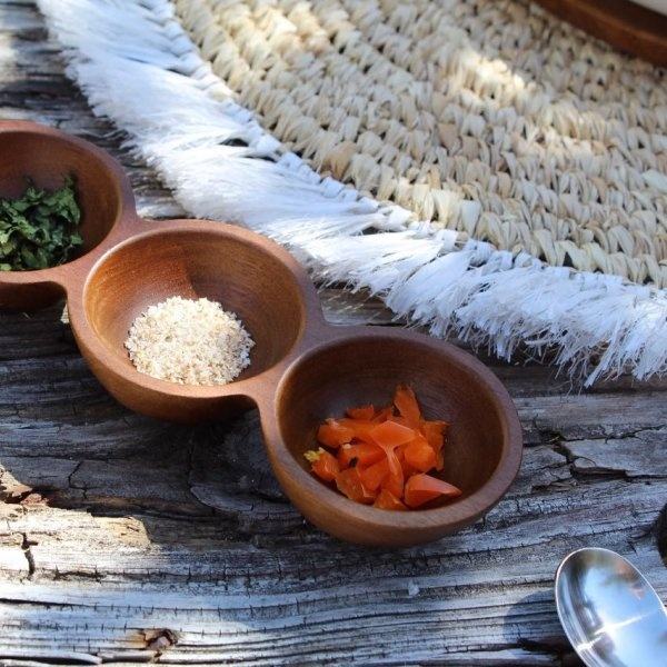 Bandeja y cuencos de madera atractivos de la porciónNombre del producto