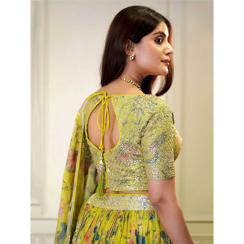 Lentejuelas amarillas atractivas Organza Haldi Wear Lehenga Choli