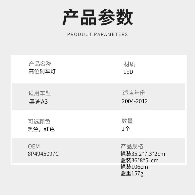 Luz de Freno Trasera LED de Montaje Alto para Audi A3, Modelo 2004-2012 8P4 945 097 C, Roja y Negra, Número de Pieza M024
