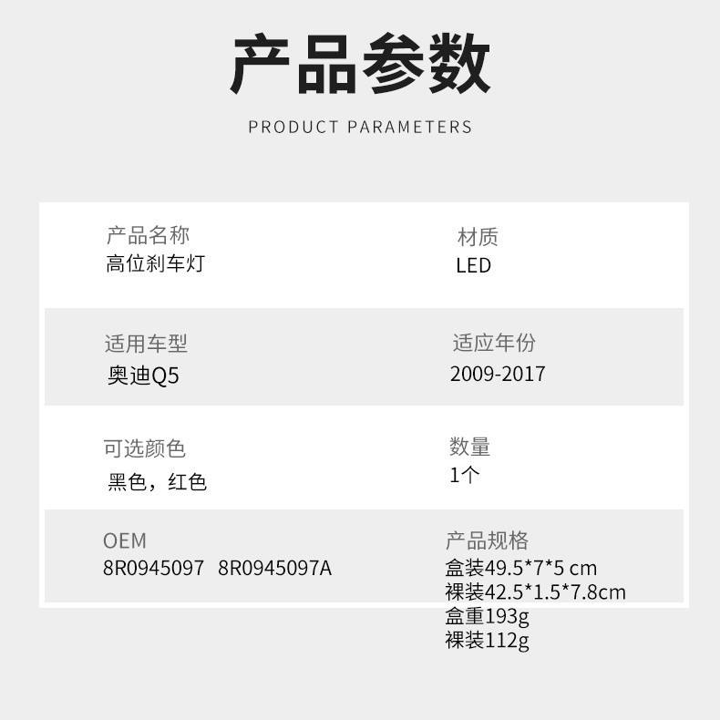 Luz de Freno LED de Montaje Alto para Audi Q5 2009-2017, Negra y Roja, 8R0945097 8R0945097A