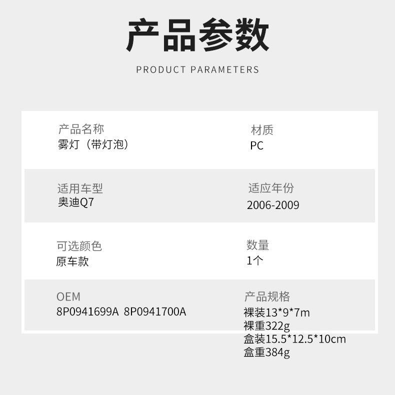 Luz Antiniebla para Audi Q7 con Bombilla 8P0941699A 8P0941700A, Material PC, Modelo 2006-2009