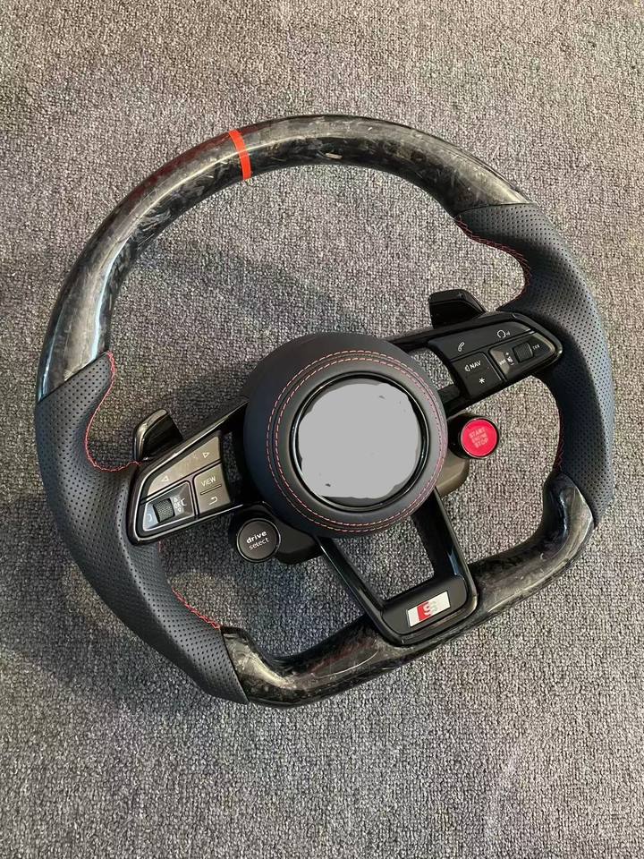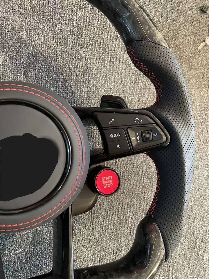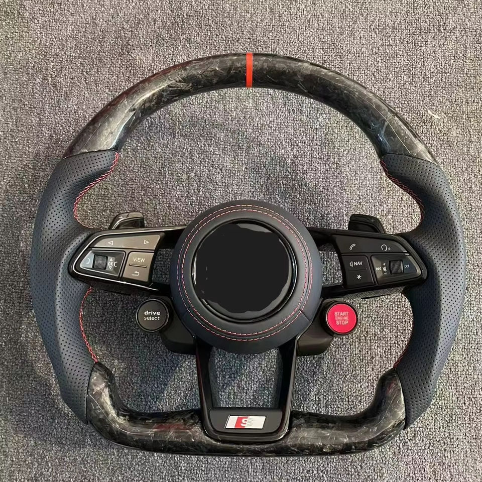 Volante Deportivo de Fibra de Carbono y Cuero para Audi R8/A4/A5/A6/A7/RS3/RS6/RS7/C7/C8/B9/B9.5/S3/SQ5/Q3/Q7/Q8/A3/B7/8V/S4/S5/RS3/RS4/RS5/Q5
