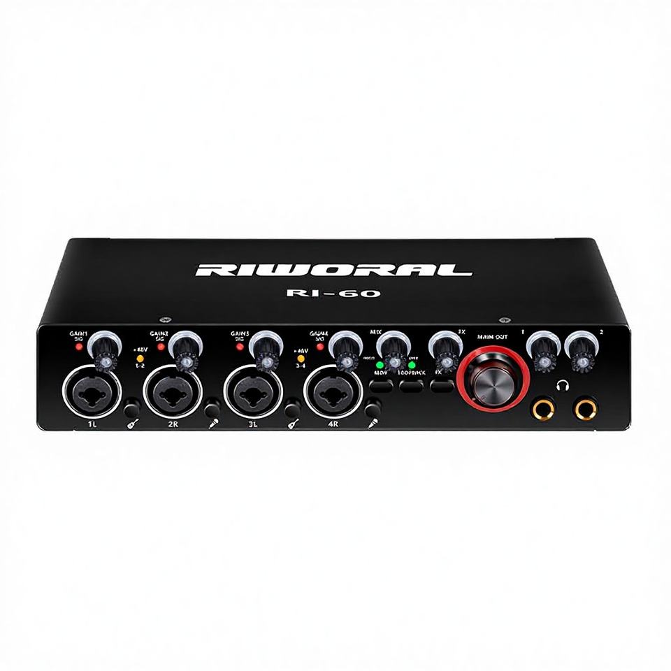Interfaz de Audio de 4 Canales con Entradas XLR, Tarjeta de Sonido Digital Portátil de 48V para Micrófono, Grabación en PC, Cancelación de Ruido