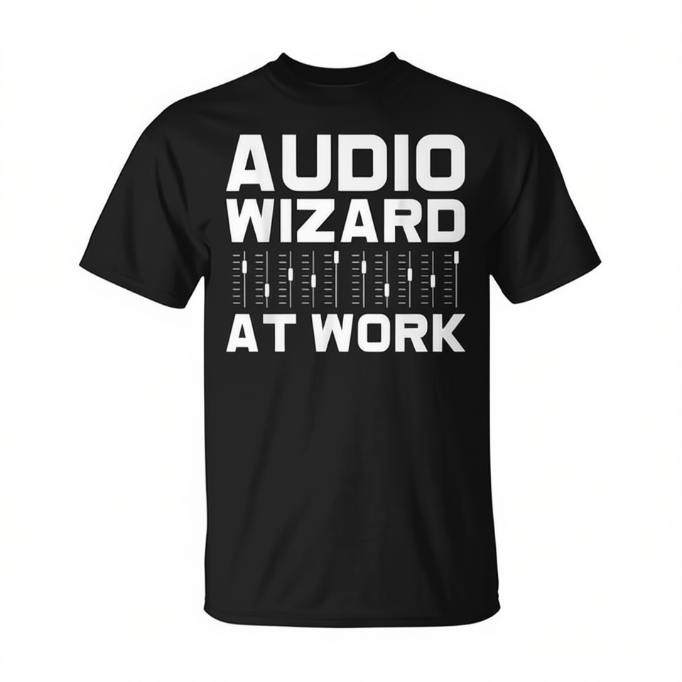 Camiseta promocional de Audio Wizard at Work para técnicos de sonido
