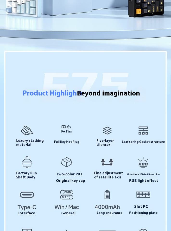 Aula Wolf Spider F75 Teclado mecánico inalámbrico de tres modos personalizado de 2,4 GHz Estructura de junta intercambiable en caliente de tecla completa PC