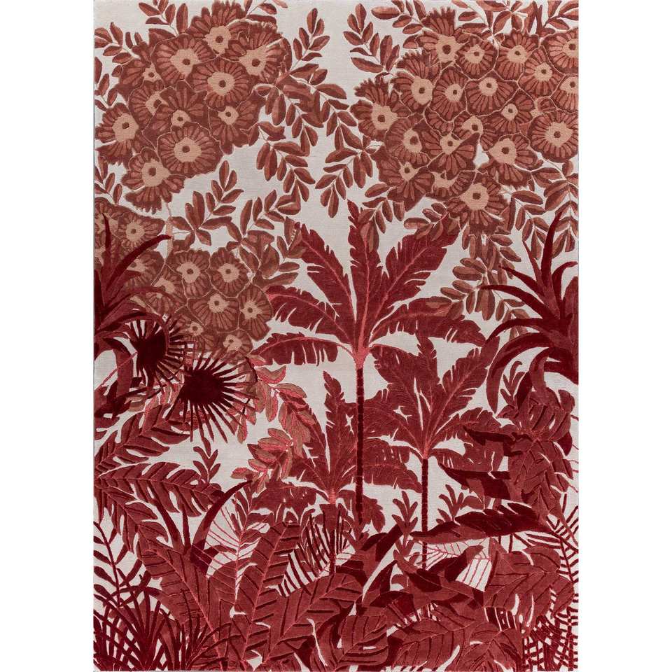 Alfombras Aurelia Hechas a Mano con Lana y Viscosa, Diseños Florales y Abstractos en Rojo y Naranja para el Hogar y la Sala de Estar -Tra-15191