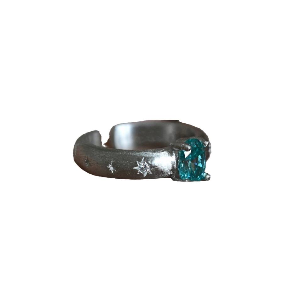 Anillo de Plata Pura S925 Aurora Palaiba con Diseño de Estrella y Diamantes Rosados Apilados, Baño de Oro de 18K, Anillo de Diamantes Papalacha de Alto Contenido de Carbono