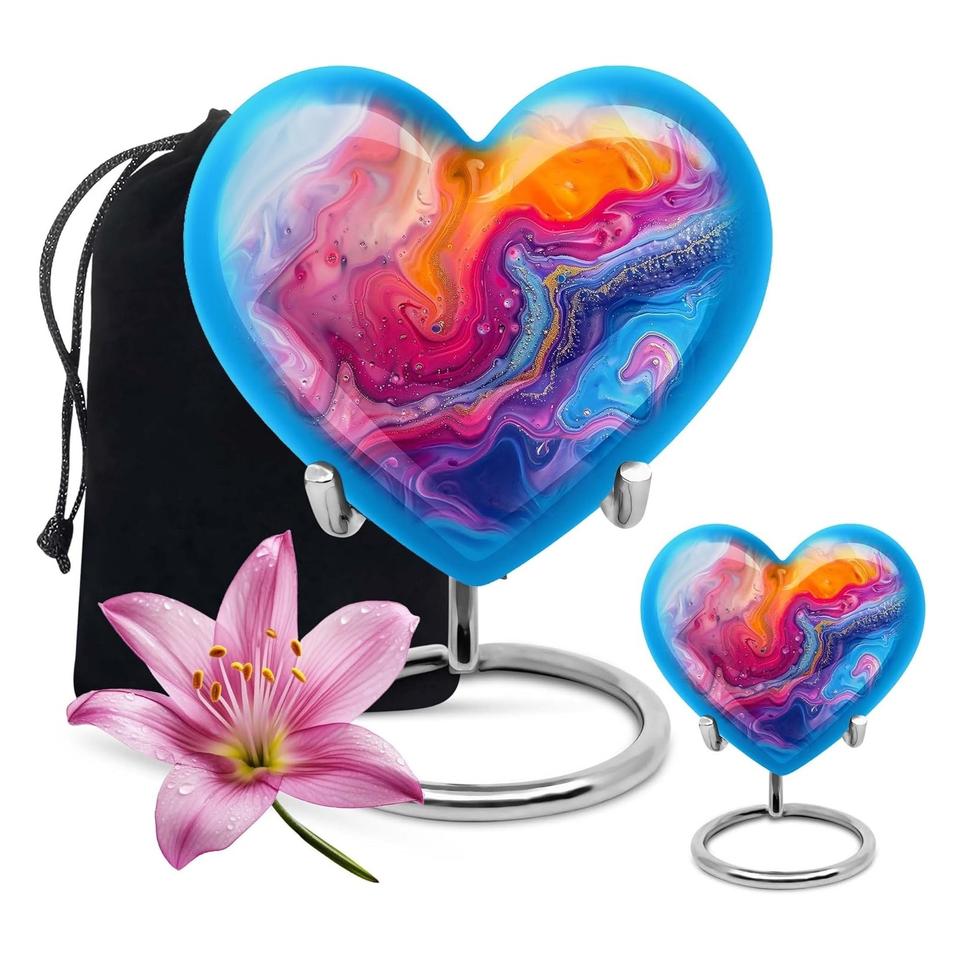 Aurora Radiance Combo 2 urnas azules Urna de cremación de 10 pulgadas Urna de recuerdo Urna de corazón de estilo americano para cenizas humanas Color azul radiante