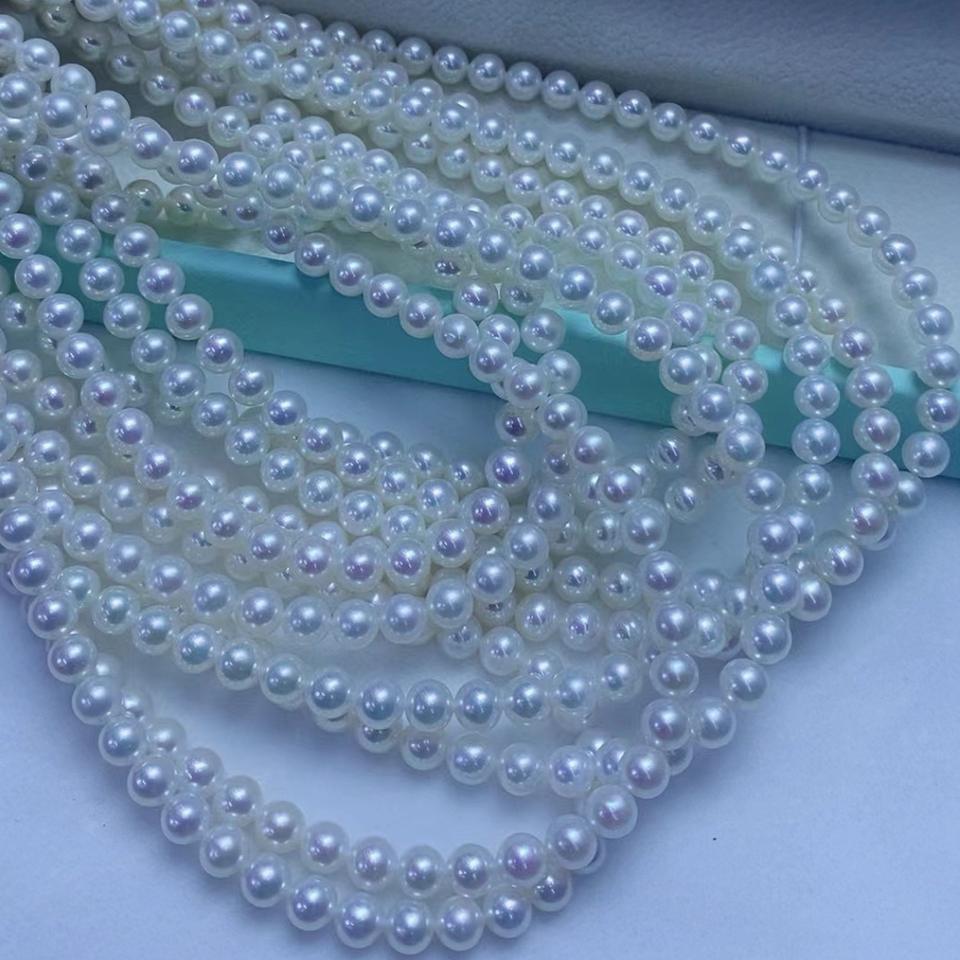 Collar de Perlas de Agua Dulce Aurora, Cuentas Pequeñas de 4-5 mm, Redondas, Impecables, con Cadena de Buena Calidad y Cierre de Plata