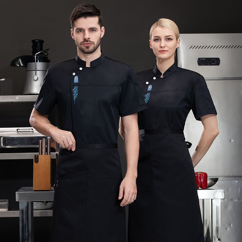 Auspicioso Nubes Bordado personalizado Diseño Chef Chaqueta Hombres Algodón Hotel Manga corta Chef Uniforme
