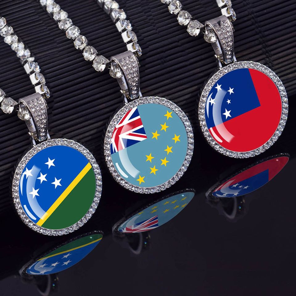 Australia bandera Hip Hop collar Rhinestone colgante Bling Iced Out CADENA DE TENIS Fiji Samoa Kiribati Tuvalu banderas nacionales joyería