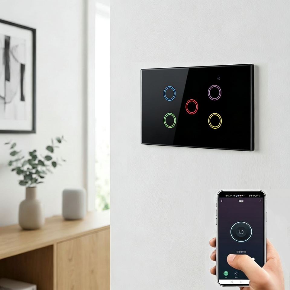 Interruptor Inteligente WiFi de Pared de 5 Canales, Compatible con la Aplicación Tuya, Control Remoto Inalámbrico, Cinco Interruptores, Compatible con Alexa Echo y el Asistente de Google