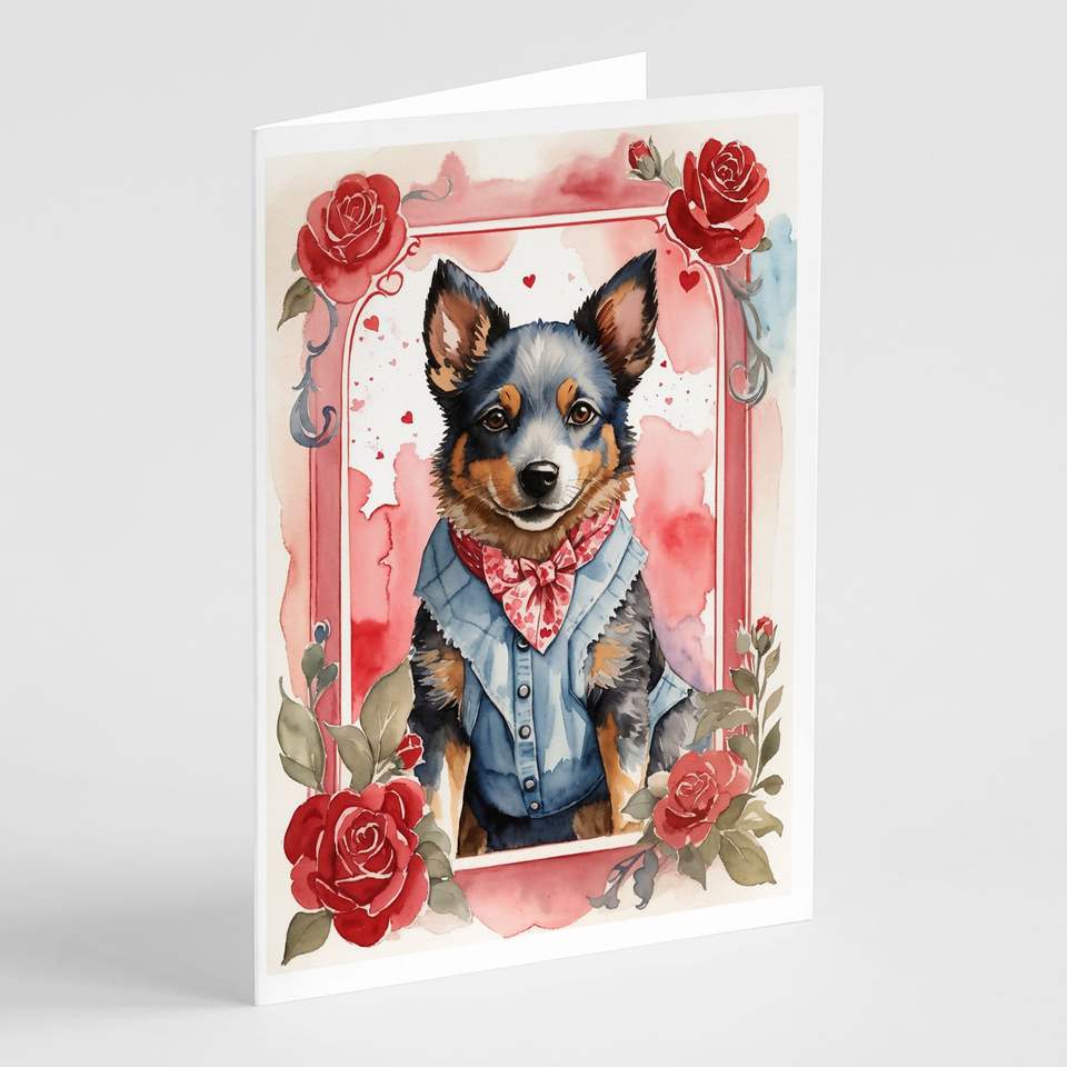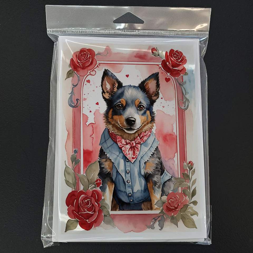 Perro de ganado australiano Whimsical Valentine Roses Pack 8 A7 Tamaño 5x7 Tarjetas de felicitación en blanco con sobres Tarjetas de notas