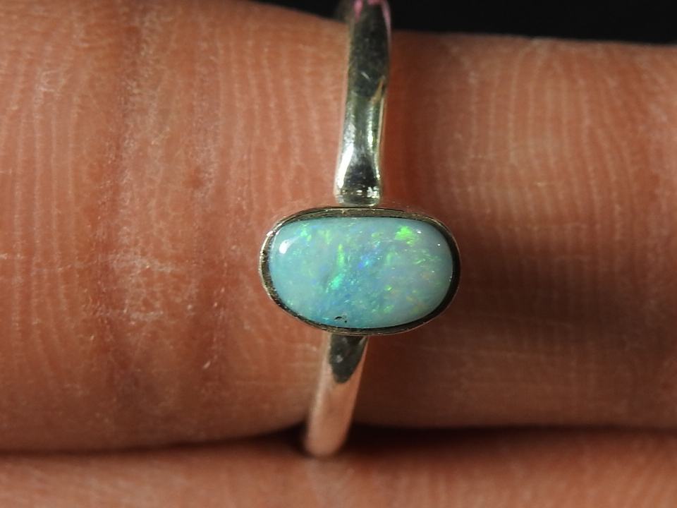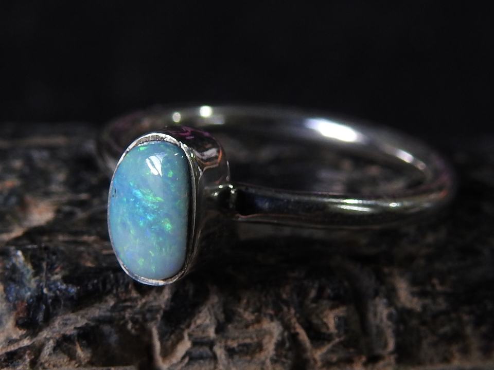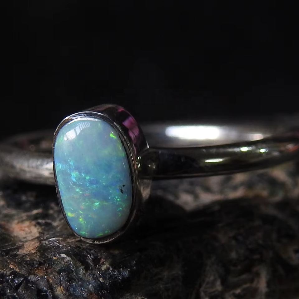 Anillo de Plata de Ley con Ópalo Australiano Multifuego en Engaste Clásico, Joyería Artesanal para Mujer, Regalo de Boda MS