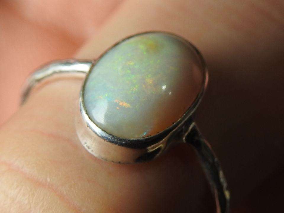 Anillo de boda australiano de ópalo multicolor - Plata - Piedra de nacimiento de octubre - 11x8mm - Talla 7 de EE. UU. - Engaste clásico de puntas hecho a mano - Tercera piedra