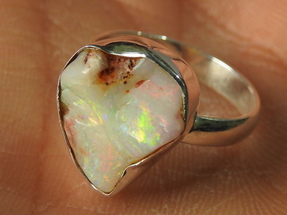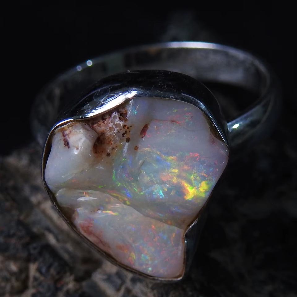 Anillo de Ópalo Australiano Natural Pulido con Engaste Clásico, Regalo para Ella, Joyería de Moda para Bodas y Fiestas, Nueva Llegada