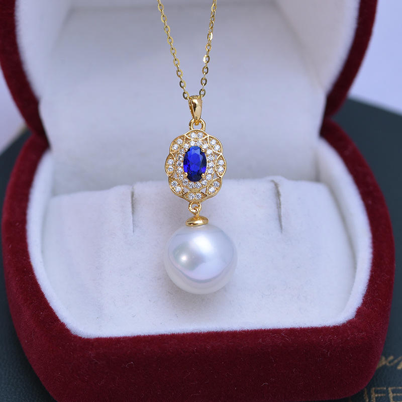 Collar Australiano de Oro Blanco G18 con Perla en Forma de O de 12-13 mm, Perla Individual de Luz Intensa, Colgante de Cabeza de Melón, Dijes de Perlas