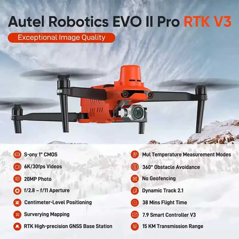 Dron Plegable Comercial Autel EVO 2 II Pro RTK V3 con Alcance de 10 km y Cámara Profesional 4K con Posicionamiento GPS