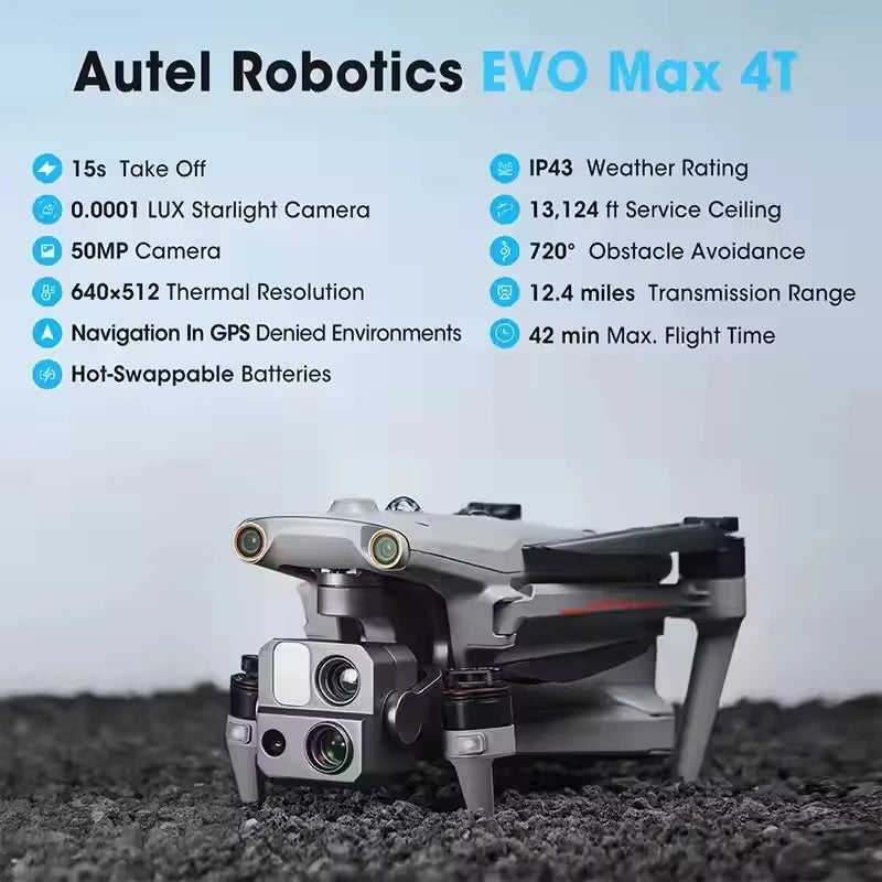 Dron Autel EVO Max 4T V2 para Principiantes, Quadcopter Térmico VTOL con Evitación de Obstáculos, Distancia de Control de 20 km, Batería FHD, Drones Comerciales